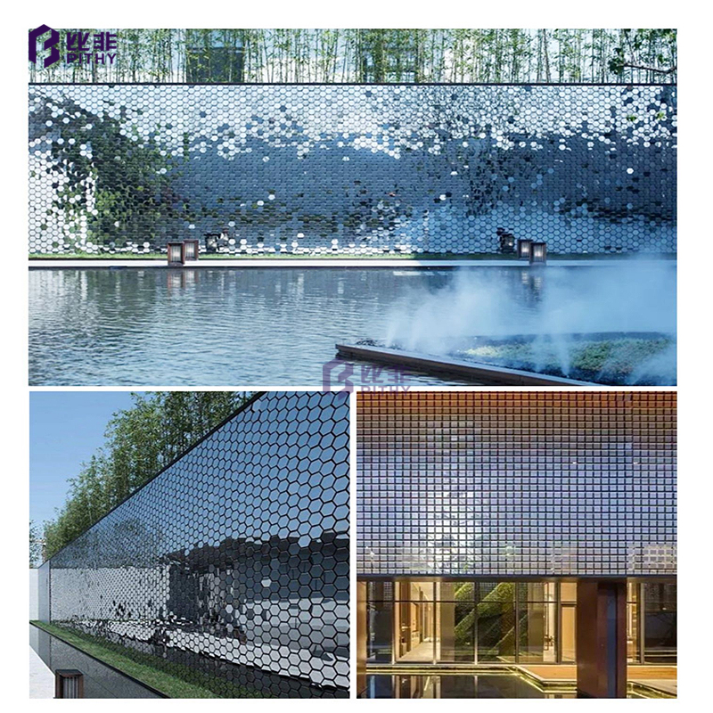 风动幕墙风动片有很多类型,如六边形、长方形、正方形、菱形等。
